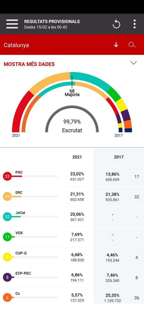 En aquest camp, crec important ressaltar el fracàs de tots els intents de trencar les hegemonies o de recuperar les perdudes (en el cas del PDECAT). M’atreviria a dir que, definitivament, aquí no hi ha lloc per a més formacions, per la qual cosa, insistir en PDECAT, PNC, Primàries, FNC… és demanar al votant que llenci el vot a la paperera, o que faci un acte testimonial i si és així, cal dir-ho. O dit d’una altra manera: la renovació de les forces independentistes, molt probablement necessària per a desfer la divisió interna, s’haurà de fer des de dins de les actuals, o amb elles.