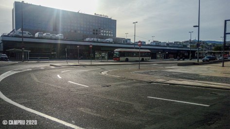 La circulació és gairebé inexistent, pocs vehicles, la majoria públics: bus, taxi, neteja, cabify camionetes de distribució. El bicing ple i amb la pantalla en negre. A la boca del metro de Tarragona, una persona de la neteja passa amb insistència un drap pels passamans d’acer inoxidable.