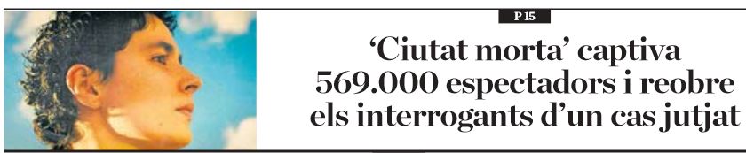 Fa poc hem viscut un cas paradigmàtic d’això que dic: la pressió sobre la Corporació Catalana de Mitjans Audiovisuals per a projectar el documental Ciutat Morta de la productora Metromuster , que finalment va suposar el record d’audiència del Canal 33 en el que es va projectar.